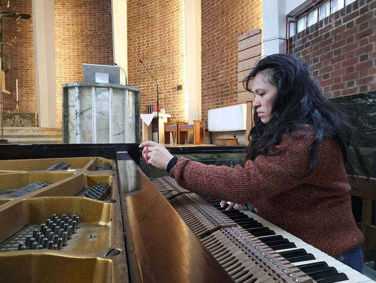 I have come to this industry through a myriad of relevant disciplines, on top of 20 years playing piano I have a background in Physics and Astronomy (University of Glasgow) and Fine Art (Gerrit Rietveld Academie), which have profoundly influenced my work in piano technology. Whilst studying art I nourished an interest in the determination of sonic colour and how that applies to acoustics and the listening experience, I also developed a competence with specialist tools and materials incredibly useful for piano repair and restoration. My degree in physics provides an understanding of theory of vibrations and waves, solid state physics, and mechanics. When applied to piano technology this opens up a deeper appreciation of the art of aural tuning and harmonics, the material properties of the piano and how it reacts to its environment, and the construction and regulation of the piano and all the forces involved in creating the sound. This combination of skills can augment the traditional ones and positively contribute to the current climate of early keyboard instrument technology.