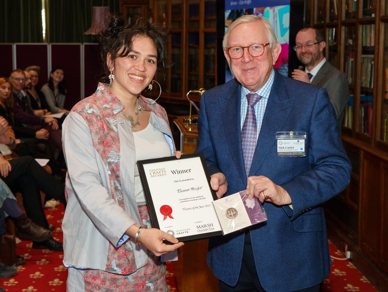 In 2023 I won the Heritage Craft Trainee of the Year Award, and then in 2024 I was fortunate to get the support and funding from two incredible organisations supporting craftsmanship in the UK; QEST and York Consortium for Conservation and Craft. The support of these 3 organisations has been pivotal in my journey, by facilitating years of intense training with various mentors, setting up work experience and attending masterclasses, as well as welcoming me to a community of fellow heritage craft people around the UK.