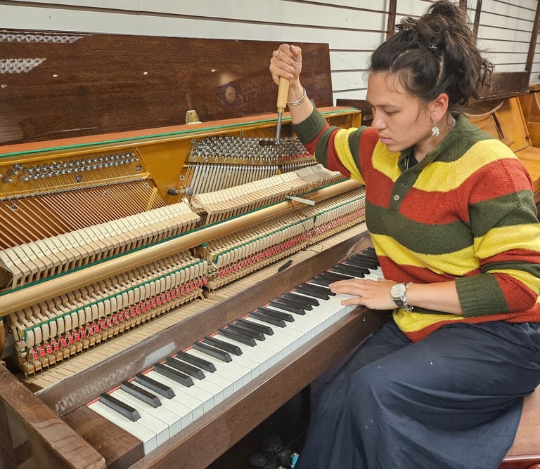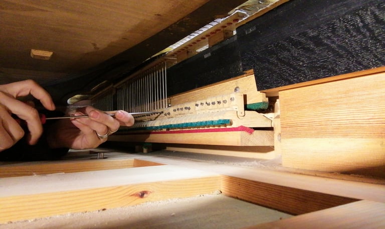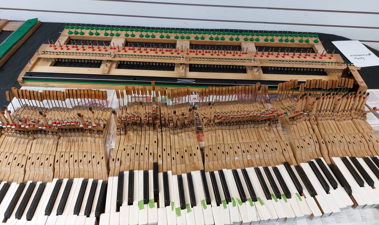 Regular tuning is essential to maintaining the best sound quality of your piano as seasonal changes and fluctuations in climate can affect the tension of the piano’s strings, leading to variations in pitch- especially if the piano has moved home. If your piano has been untouched for an extended period, it might need a pitch raise (more than 4Hz flat) although this is not always feasible, especially for older instruments with stability issues. Consequently, the initial step in the tuning process involves a thorough assessment to determine the best course of action for your cherished piano. It’s important to note that achieving concert pitch might not be possible in every case due to the age and condition of the instrument but in these cases the piano can be tuned to itself. When tuning a piano - especially during a pitch raise there is always a risk of breaking a string, in most cases this repair can be done on site with steel wire (and a few return visits to tune the string until it stays at pitch), however if a bass string breaks this requires a rubbing to be done of the piano to send to a string maker, who will in turn send back a wound copper string to fit the piano