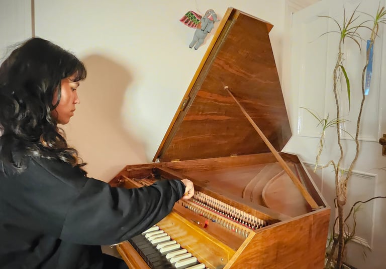 Being a piano technician offers invaluable transferrable skills applicable to working on other early keyboard instruments such as virginal, clavichord and harpsichord. Despite being more simply constructed they require a complicated tuning system that differs from the equal temperament commonly used in modern pianos – there are many different unequal temperaments and some instruments suit one over others. Furthermore due to the lower tension across their frames (wooden as oppose to cast iron), early keyboard instruments are more susceptible to environmental changes, which results in the need for more frequent tuning. As well as working on early strung keyboard instruments, I am also in the process of restoring a Dulcitone – a rare instrument invented in Glasgow in 1864 by Thomas Machell, which despite its popularity in Glasgow is not found so commonly further afield. This comprehensive education allows me to appreciate the nuances of sound, craft and playability that define various early keyboard instruments, and in learning to adjust for these unique factors ,bridge the gap between historical precision and contemporary performance.